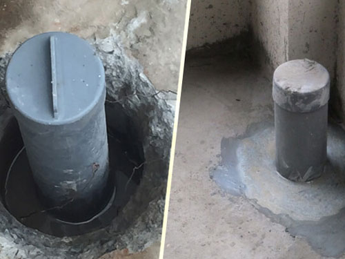 - Dùng phụ gia hồ dầu Latex trộn với vữa xi măng cát mác #75 để đổ định vị cố định ống theo thiết kế.